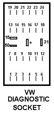 Various checks could be made on the battery circuit. The open-circuit voltage is measured from pin 31 to pin +. With the engine running, charging voltage could be measured. It was also possible to apply external load currents while observing the battery voltage.